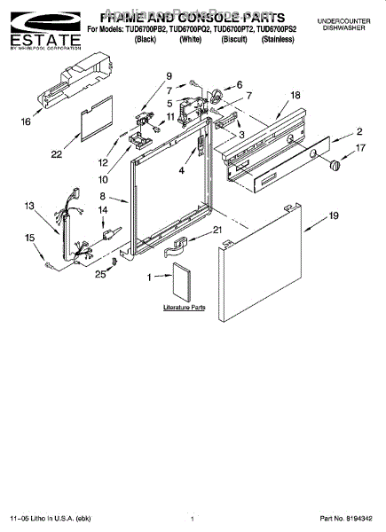 Parts for Estate TUD6700PT2: 01 - Frame And Console Parts