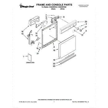 Dishwasher door panel insert. Reversible: white color on one side, black on the other.