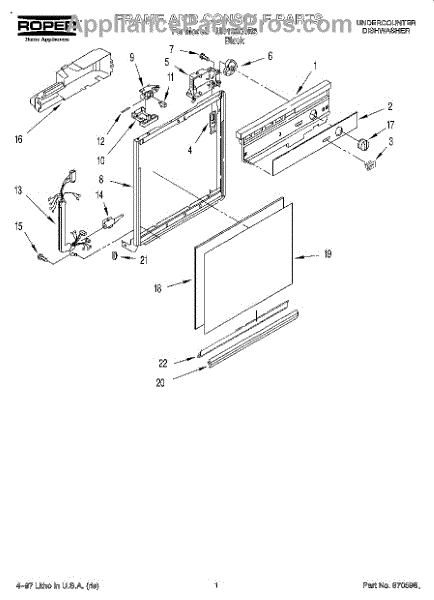Parts for Roper RUD1000DB3: 01 - Frame And Console Parts