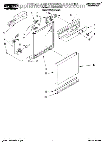 Parts for Roper RUD3000DB0: 01 - Frame And Console Parts