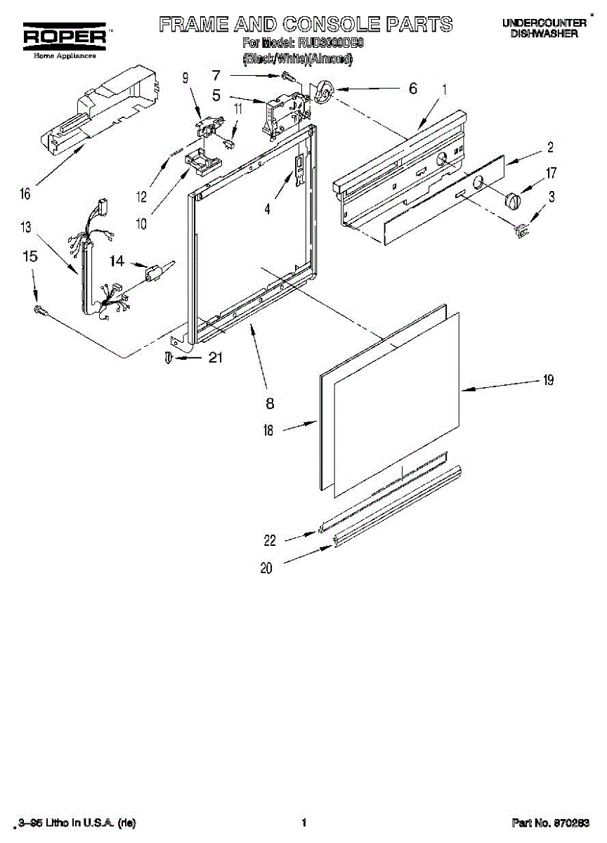 Reversible dishwasher door panel insert in black and white. Replaces dented, rusted, or worn door panels to refresh your dishwasher's appearance.