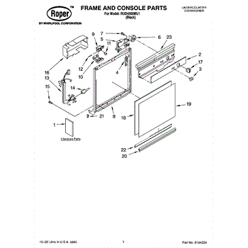 Dishwasher door panel insert. Reversible: white color on one side, black on the other.