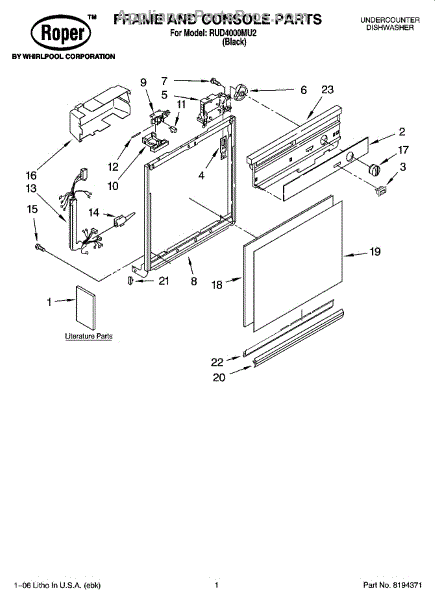 Dishwasher door panel insert. Reversible: white color on one side, black on the other.
