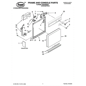 Dishwasher door panel insert. Reversible: white color on one side, black on the other.