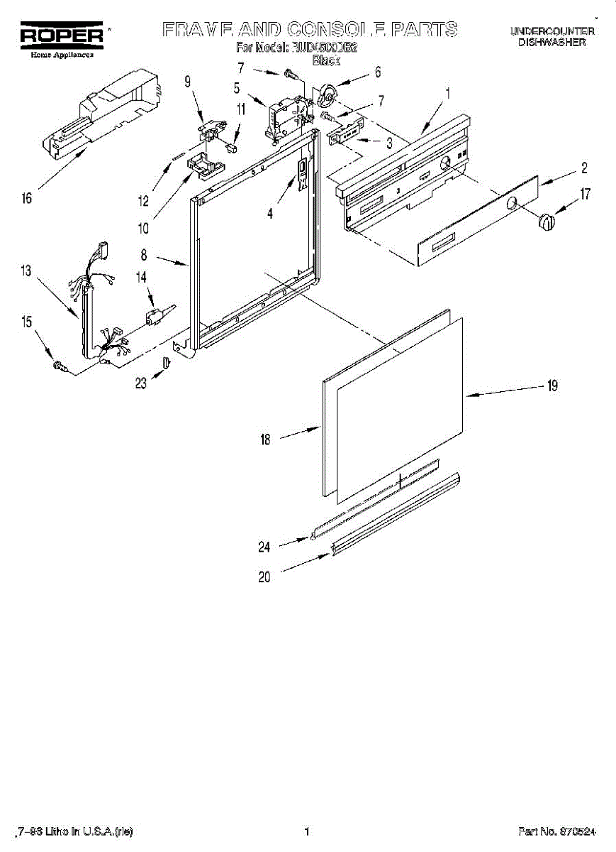Black dishwasher door frame trim that surrounds the interior door opening. Replaces cracked, broken, or discolored trim pieces. Direct fit installation.