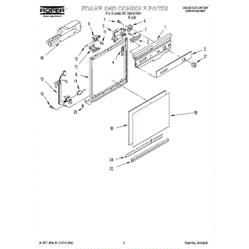Dishwasher door panel insert. Reversible: white color on one side, black on the other.
