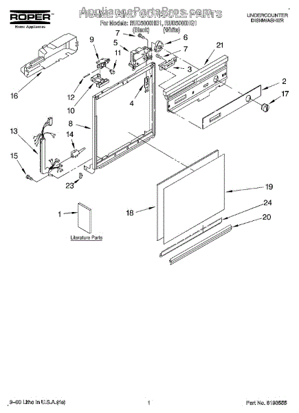 Parts for Roper RUD5000HB1: 01 - Frame & Console, Literature Parts