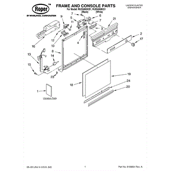 Dishwasher door panel insert. Reversible: white color on one side, black on the other.
