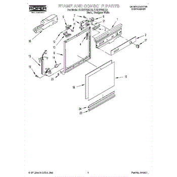 Dishwasher door panel insert. Reversible: white color on one side, black on the other.