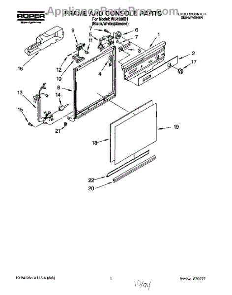 Parts for Roper WU4300B1: 01 - Frame And Console Parts