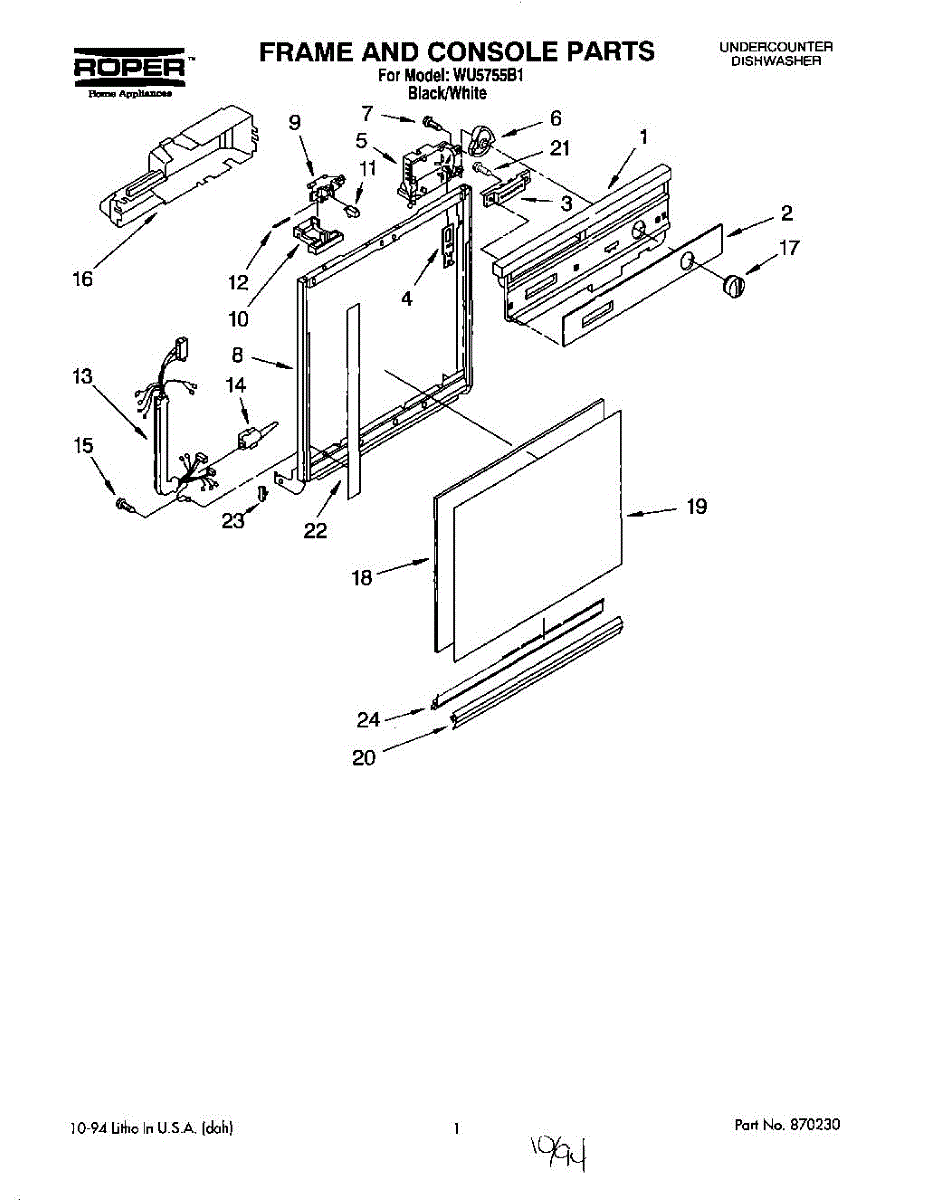 Reversible dishwasher door panel insert in black and white. Replaces dented, rusted, or worn door panels to refresh your dishwasher's appearance.