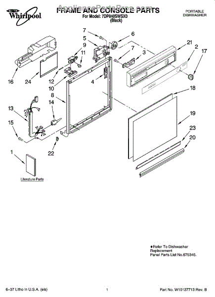 Dishwasher door panel insert. Reversible: white color on one side, black on the other.