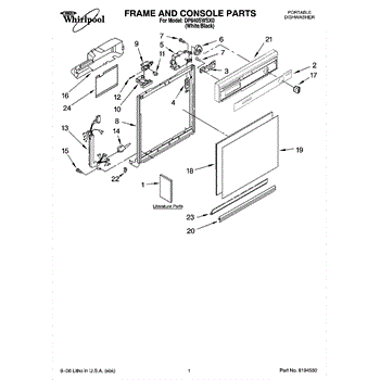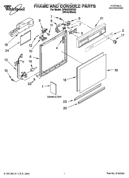 Dishwasher door panel insert. Reversible: white color on one side, black on the other.