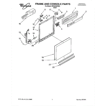 Dishwasher door panel insert. Reversible: white color on one side, black on the other.
