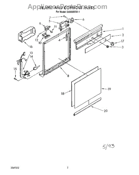 Parts for Whirlpool DU5000XW1: 01 - Frame And Console Parts