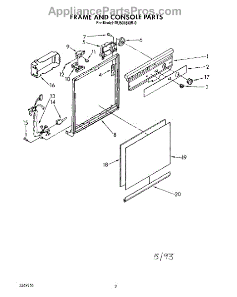 Parts for Whirlpool DU5016XW0: 01 - Frame And Console Parts