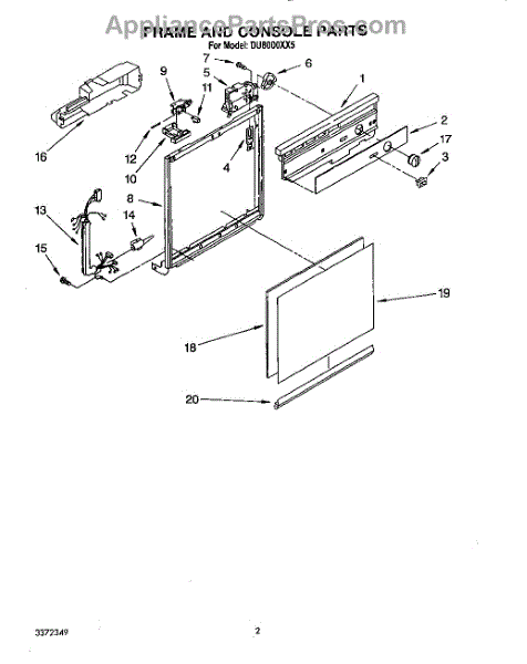 Parts for Whirlpool DU8000XX5: 02 - Frame And Console Parts