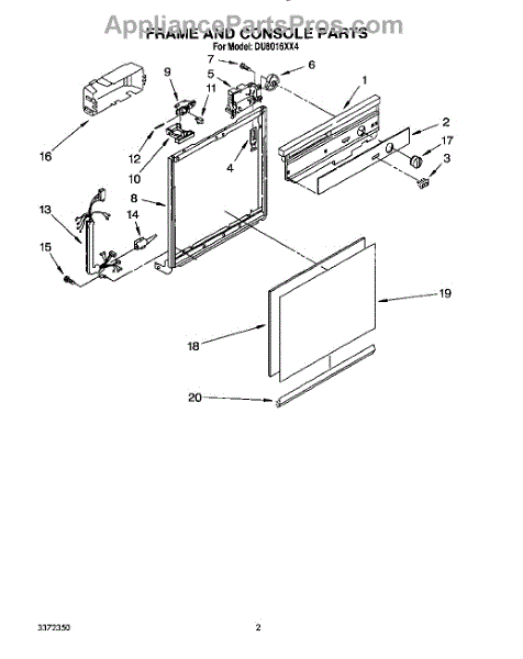 Parts for Whirlpool DU8016XX4: 02 - Frame And Console Parts