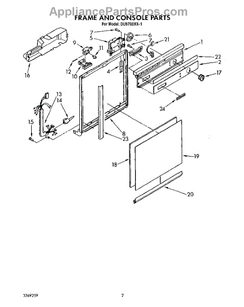 Parts for Whirlpool DU8100XX1: 02 - Frame And Console Parts