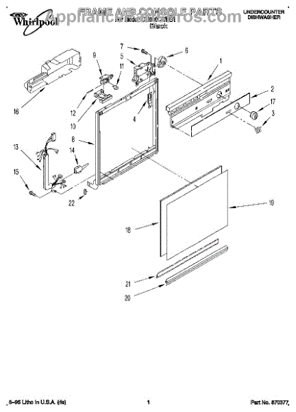 Parts for Whirlpool DU810CWDB1: 01 - Frame And Console Parts