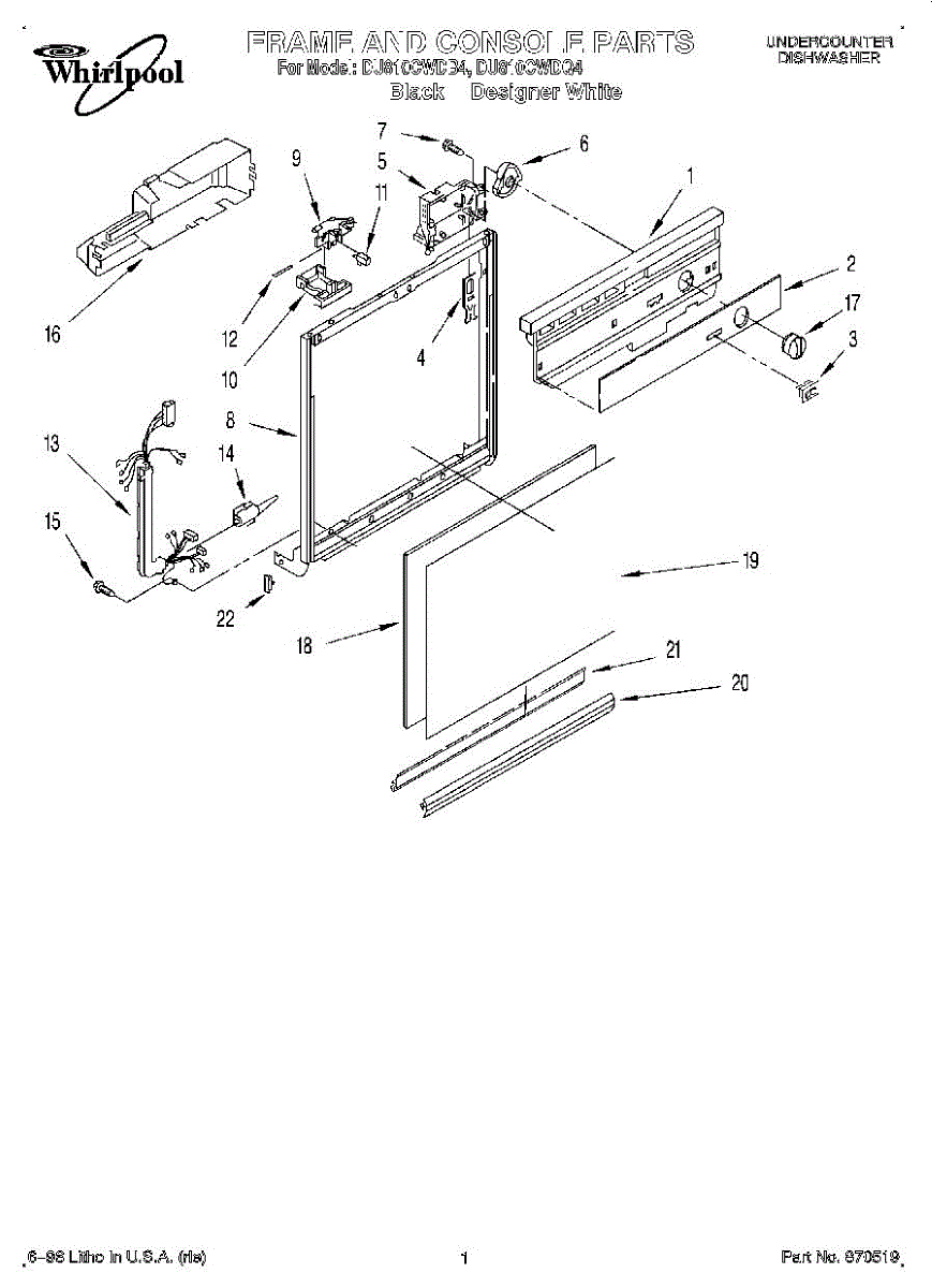 Black dishwasher door frame trim that surrounds the interior door opening. Replaces cracked, broken, or discolored trim pieces. Direct fit installation.