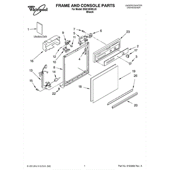 Dishwasher door panel insert. Reversible: white color on one side, black on the other.