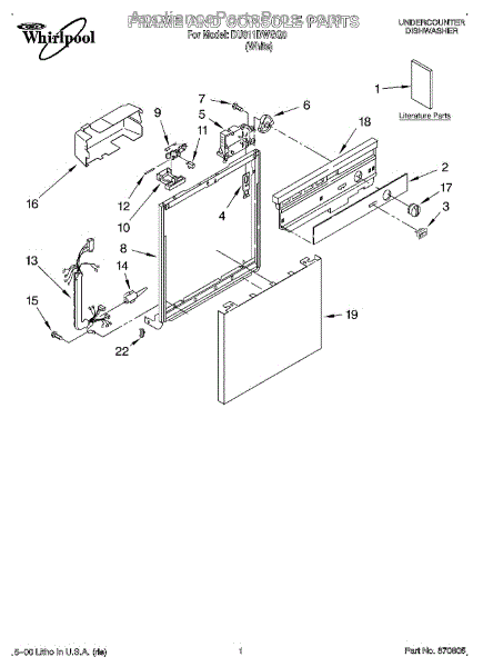 Parts for Whirlpool DU811DWGQ0: 01 - Frame And Console, Literature Parts