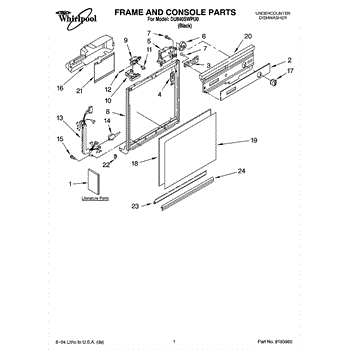 Dishwasher door panel insert. Reversible: white color on one side, black on the other.