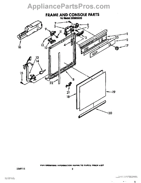 Parts for Whirlpool DU8500XX0: 02 - Frame And Console Parts