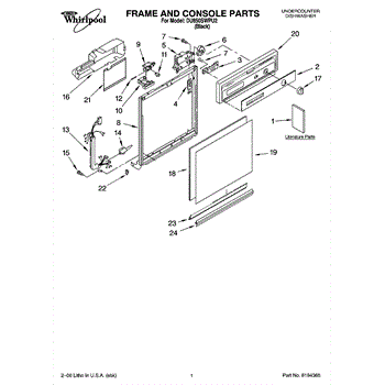 Dishwasher door panel insert. Reversible: white color on one side, black on the other.