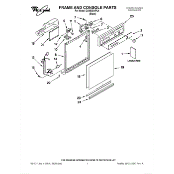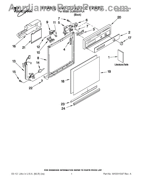 Dishwasher door panel insert. Reversible: white color on one side, black on the other.