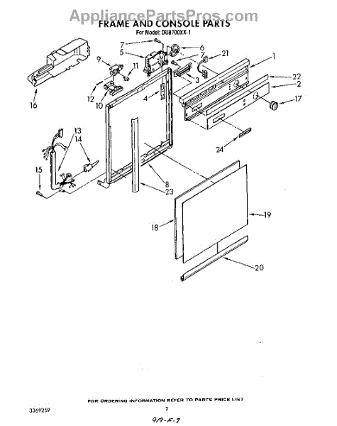 Parts for Whirlpool DU8700XX1: 02 - Frame And Console Parts