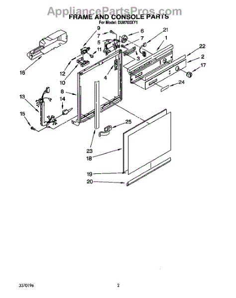Parts for Whirlpool DU8700XY1: 02 - Frame And Console Parts