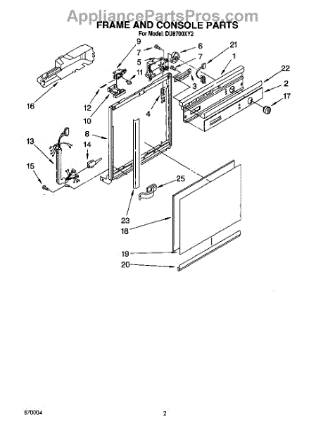Parts for Whirlpool DU8700XY2: 02 - Frame And Console Parts