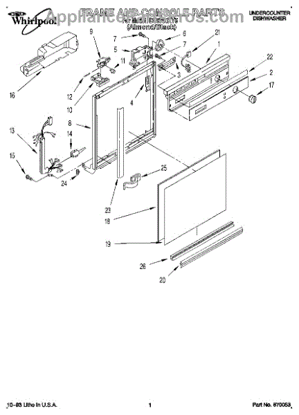 Parts for Whirlpool DU8700XY5: 01 - Frame And Console Parts