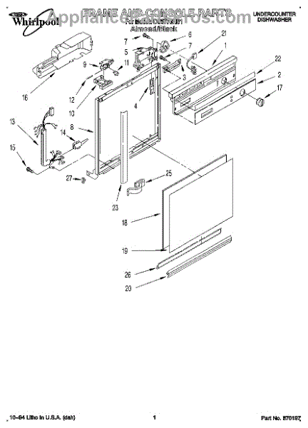 Parts for Whirlpool DU8770XB1: 01 - Frame And Console Parts
