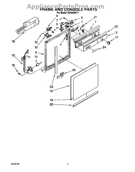 Parts for Whirlpool DU8950XY1: 02 - Frame And Console Parts
