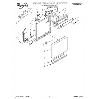 Dishwasher door panel insert. Reversible: white color on one side, black on the other.