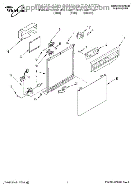 Parts for Whirlpool DU920PFGB0: 01 - Frame And Console Parts