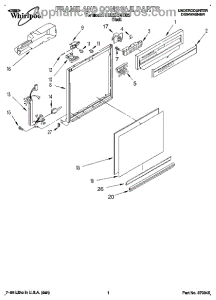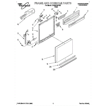 Parts for Whirlpool DU925QWDB2: 01 - Frame And Console Parts