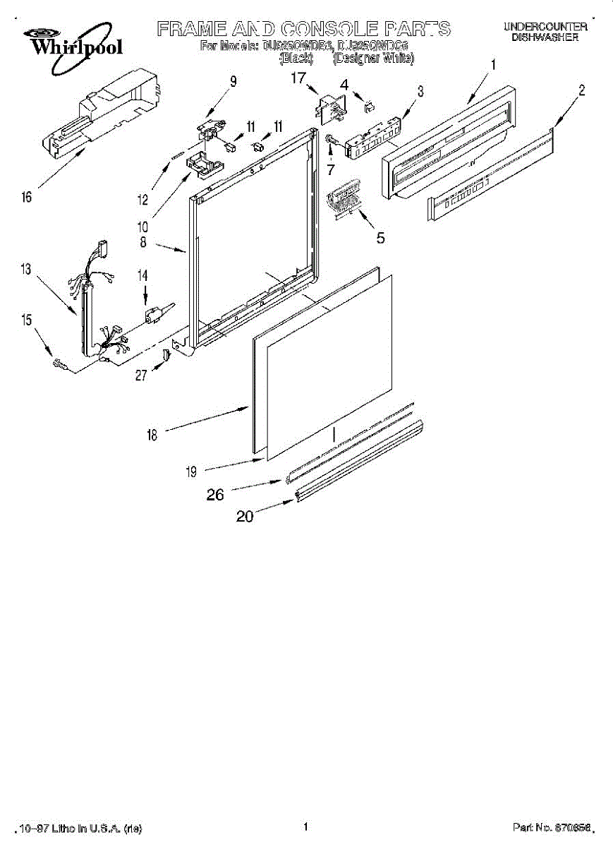 Black dishwasher door frame trim that surrounds the interior door opening. Replaces cracked, broken, or discolored trim pieces. Direct fit installation.