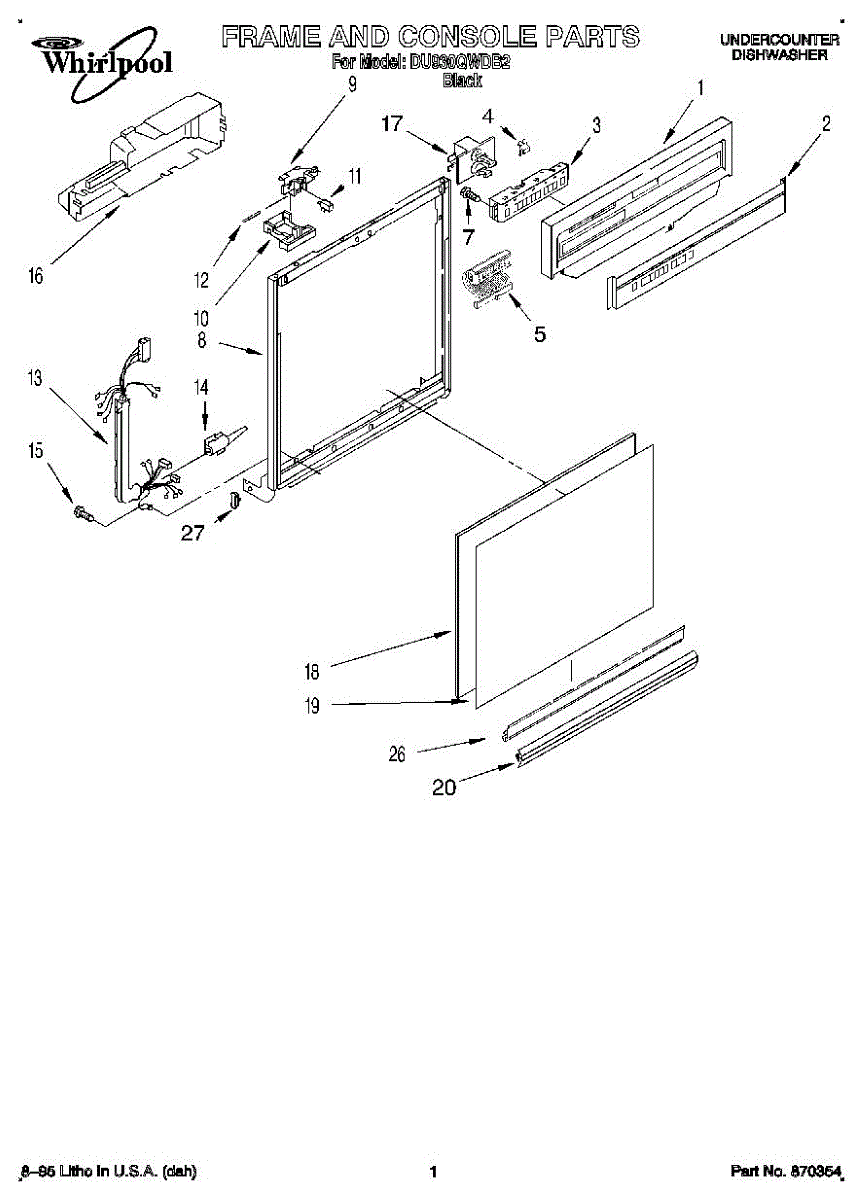 Black dishwasher door frame trim that surrounds the interior door opening. Replaces cracked, broken, or discolored trim pieces. Direct fit installation.