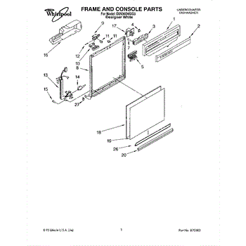 Dishwasher door panel insert. Reversible: white color on one side, black on the other.