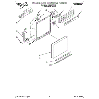 Dishwasher door panel insert. Reversible: white color on one side, black on the other.