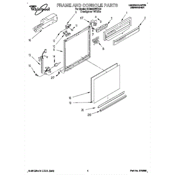 Dishwasher door panel insert. Reversible: white color on one side, black on the other.