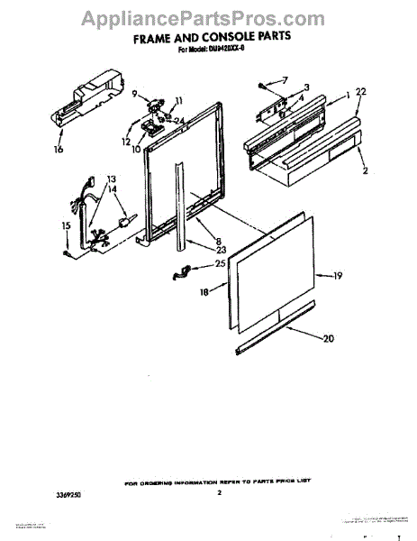 Parts for Whirlpool DU9420XX0: 02 - Frame And Console Parts