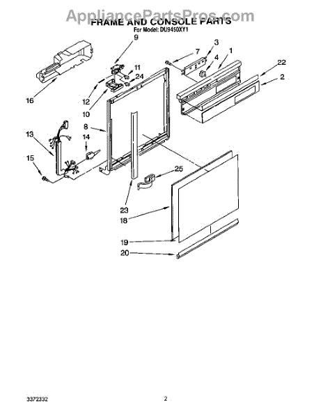 Parts for Whirlpool DU9450XY1: 02 - Frame And Console Parts