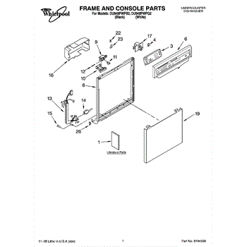 Parts for Whirlpool DU948PWPB2: 01 - Frame And Console Parts