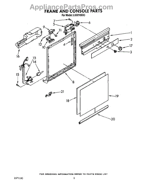 Parts for Whirlpool LUD2100X3: 02 - Frame And Console Parts