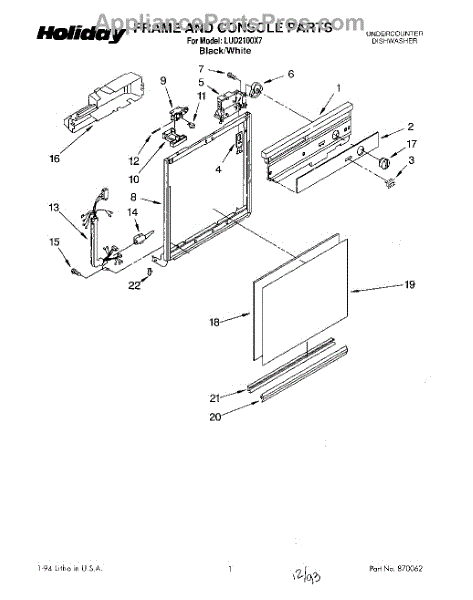 Parts for Whirlpool LUD2100X7: 01 - Frame And Console Parts